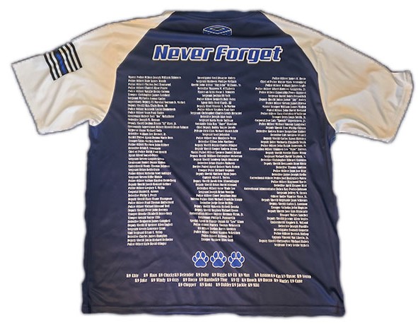 Annual Remember the Fallen jersey paying tribute and respect to all of our fallen officer’s and K9’s from 2019. The back of the shirt lists all officer’s/K9’s killed in the line of duty in 2019.