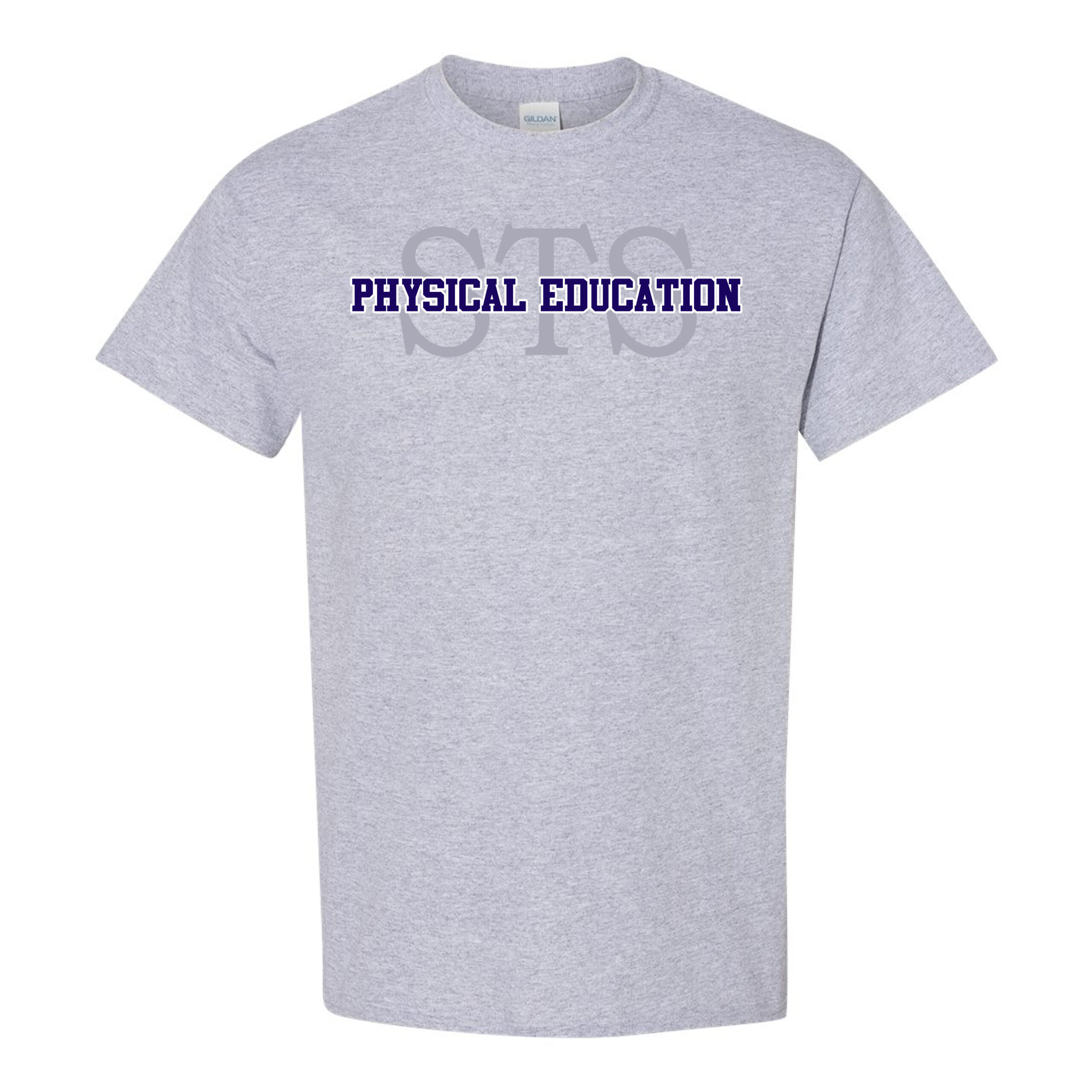 St. Scholastica gym shirts feature the St. Scholastica School STS and Physical Education the front of the t-shirt.